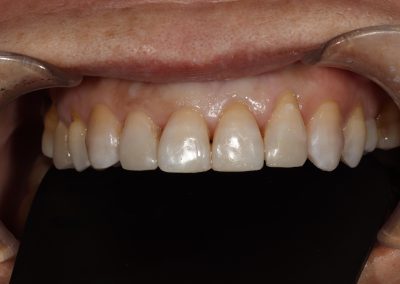 This patient finished Invisalign, but she wasn’t happy with the way her teeth looked. She did not want any tooth removal, so crowns and veneers were out of the question. We came up with the option of adding four composite fillings to her teeth and the results are stellar.