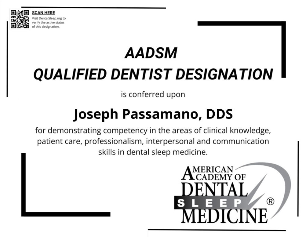 Dr. Passamano, is an Accredited Member of the American Academy of Sleep Dental Medicine.